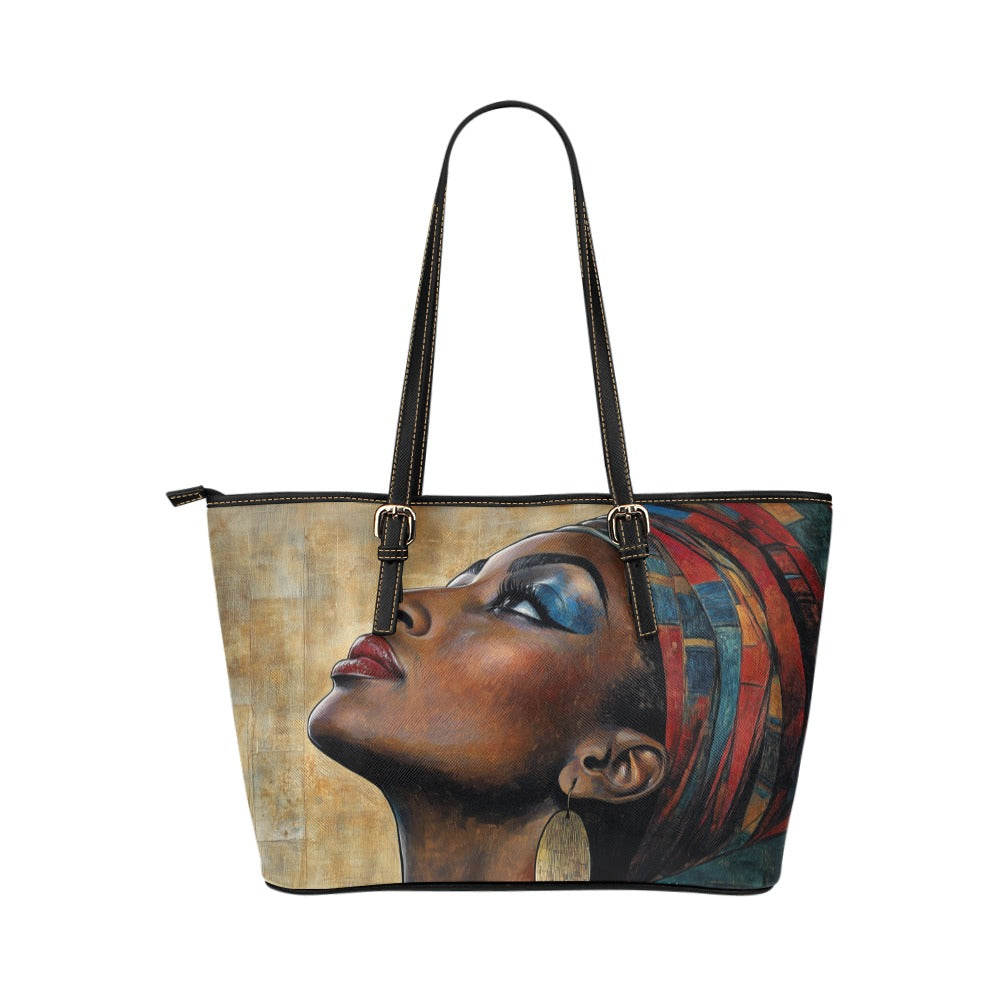 Graceful Black Woman Vegan Leather Tote Bag