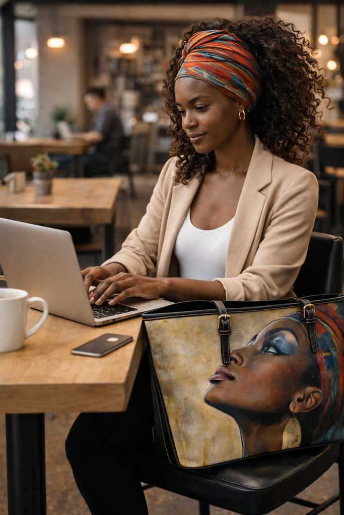 Designed for modern women who love Afrocentric fashion, Black art, and cultural style, this bag is both practical and beautiful.